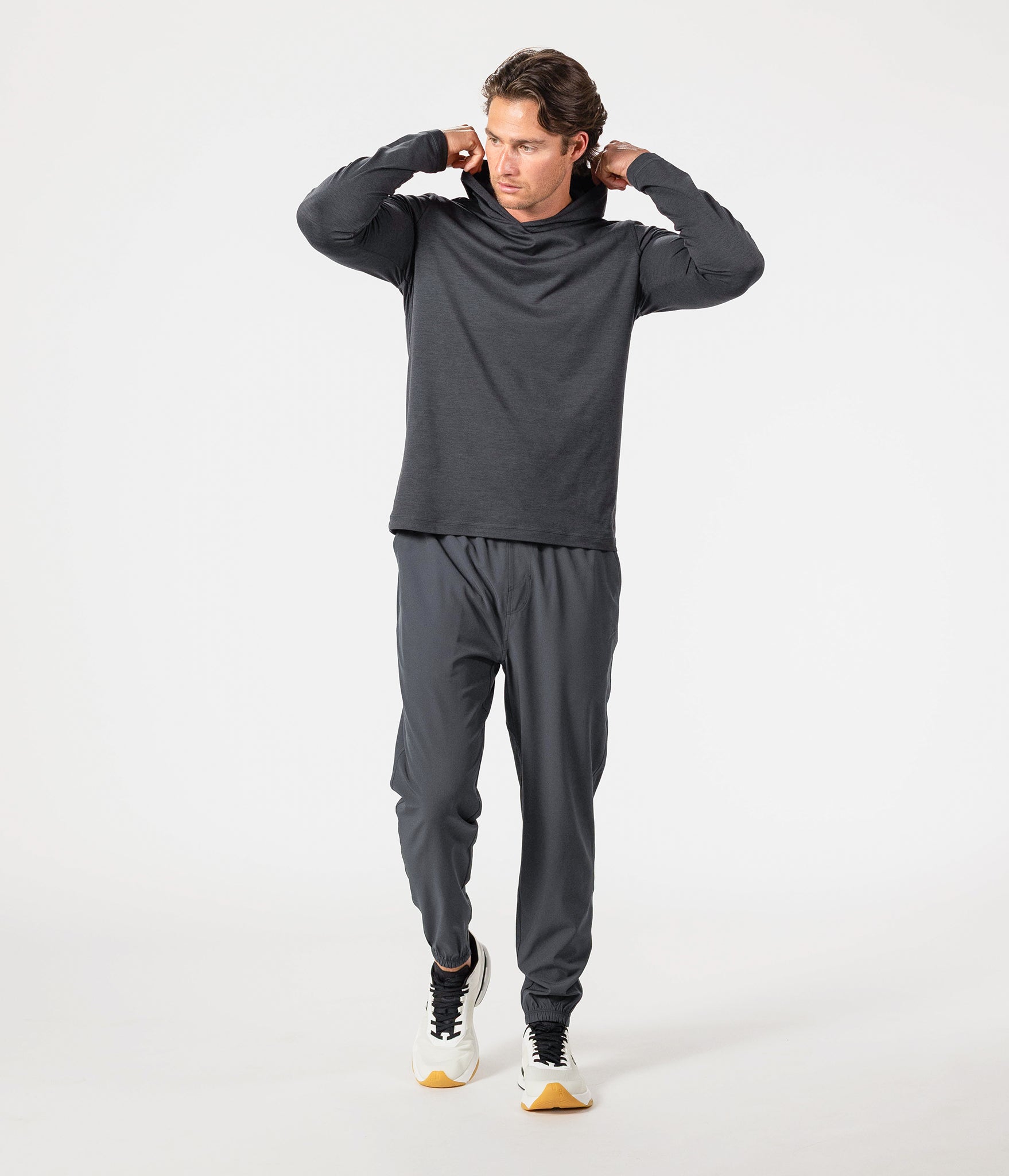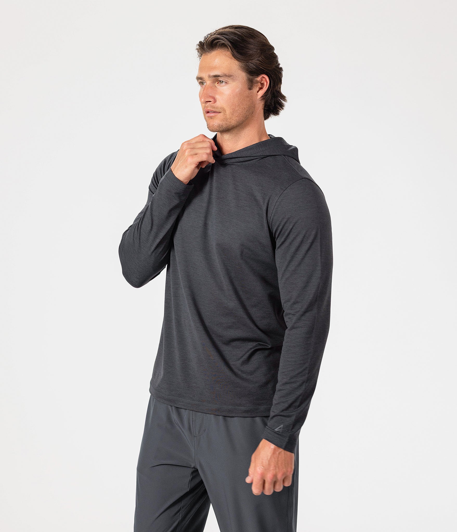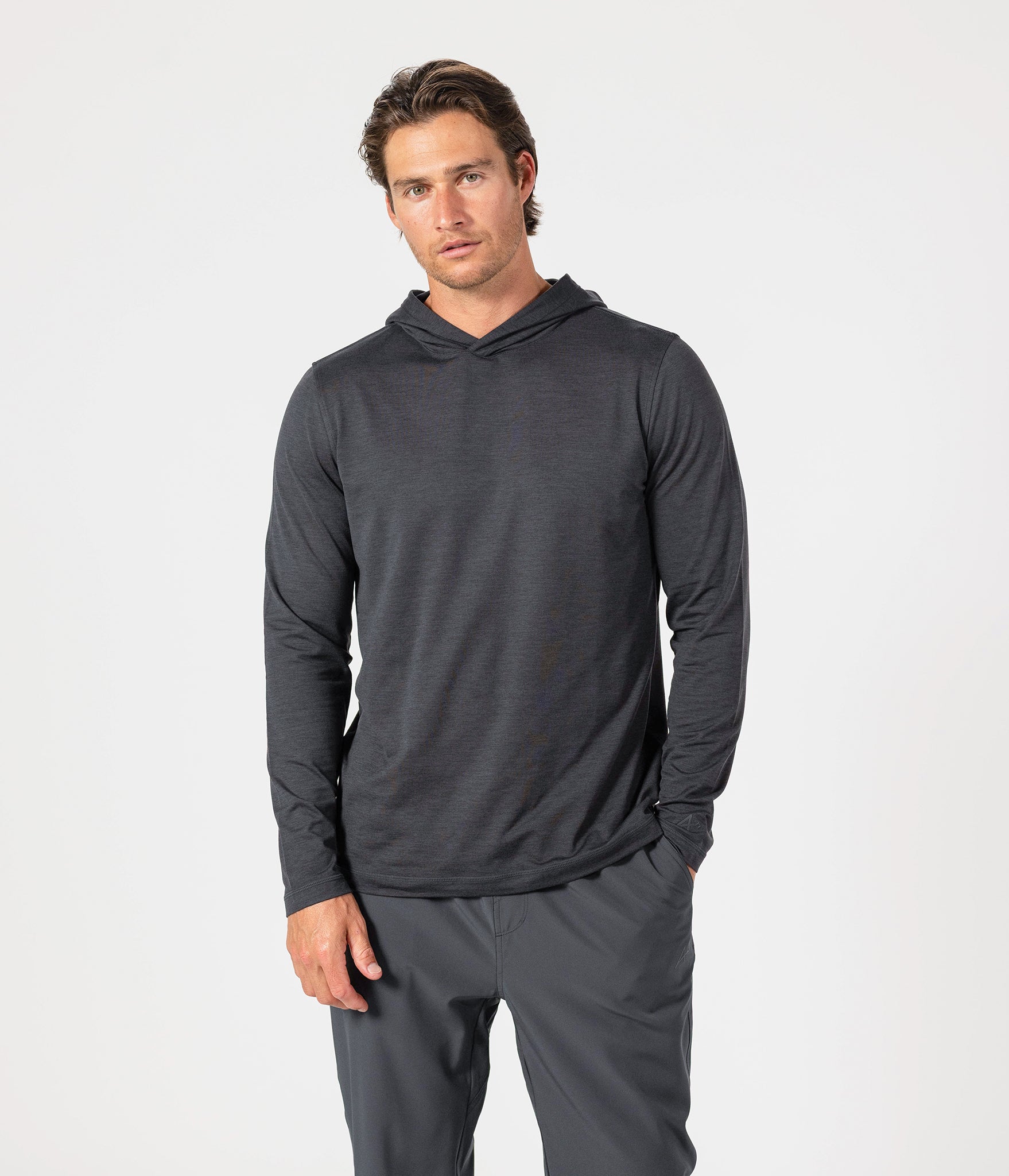 Meet the Adapt Hooded Long Sleeve. Buttery soft and light enough for sun coverage or cooldowns, this piece moves with you - on the road, in the gym, or anywhere in between. Premium comfort. All-day versatility.